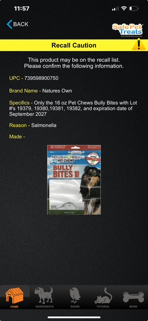 This recall has been added to the Safe Pet Treats app. Available on iTunes and Google Play.